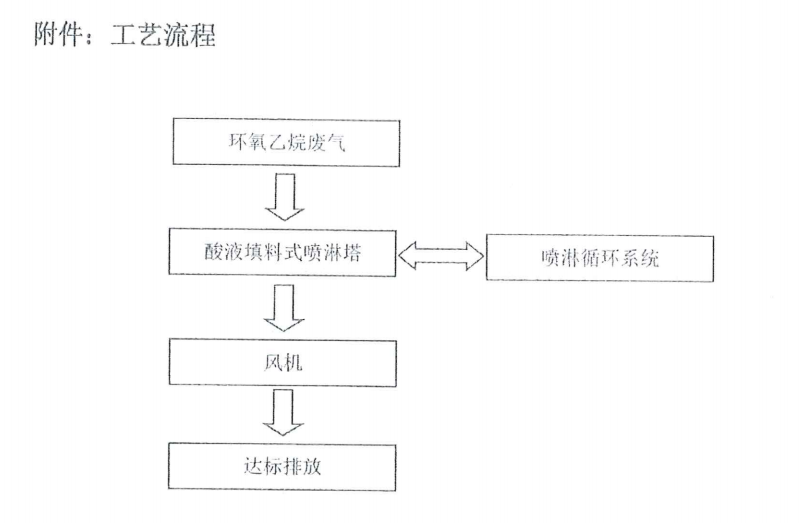廢氣經(jīng)過噴淋塔,把灰塵和顆粒狀的給排除掉,以免堵塞設(shè)備造成損耗。然后其他的廢氣經(jīng)過催化的化學(xué)作用下,把環(huán)氧乙烷給消化掉。剩余的干凈廢氣再經(jīng)過風(fēng)機(jī)排放出去。